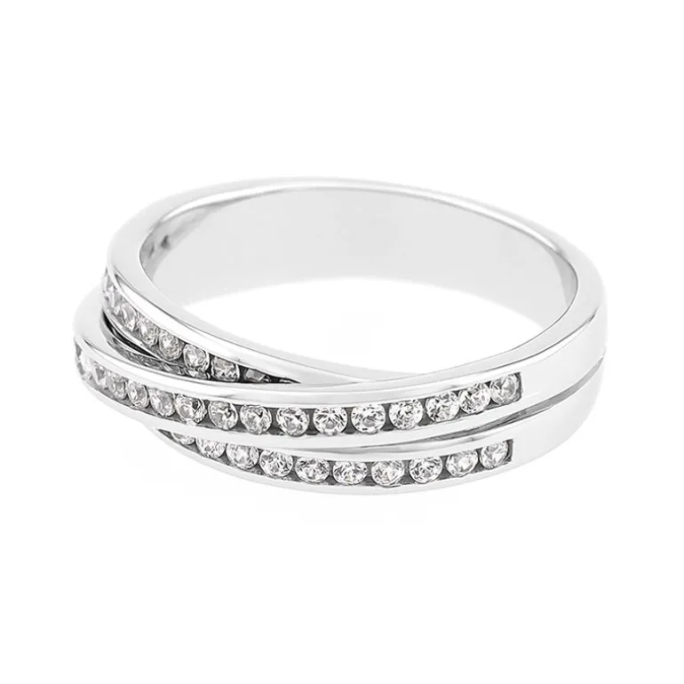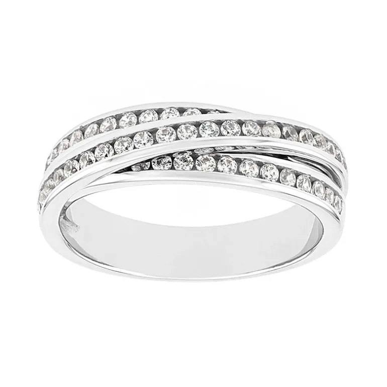 Cette alliance croisée en Or 375/1000 sublime l’éclat naturel de 47 diamants sertis avec délicatesse (0.47 ct), dans une composition graphique aux lignes entrelacées. L’effet visuel est saisissant : un entrelacs de reflets et de feu qui capte chaque instant de votre histoire.