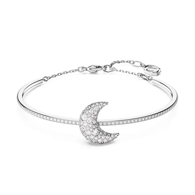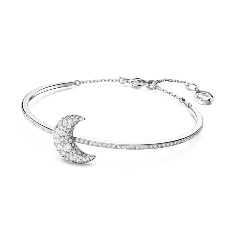 | Genre : Femme Matière : Métal rhodié blanc Pierre : Cristaux blancs Forme : Lune Longueur maximum: 17 cm Hauteur du motif: 1.38 cm Largeur du motif: 1.55 cm Fermoir : Mousqueton Collection: Luna Référence : 5666175 |