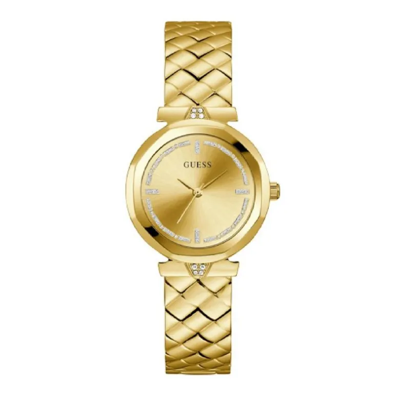 La Montre Femme Guess Acier Doré GW0613L2 incarne l’élégance avec une touche chic, idéale pour sublimer vos tenues. Dotée d’un boîtier rond en acier doré et d’un cadran doré assorti, elle est embellie par des cristaux étincelants qui ajoutent une note de glamour. Son bracelet en acier doré avec une boucle déployante, assure un confort optimal et une tenue parfaite. Fonctionnant avec un mouvement quartz et protégée par un verre minéral résistant, cette montre analogique est étanche jusqu’à 30 m (3 ATM), idéale pour un usage quotidien. Retrouvez la Montre Femme Guess Acier Doré sur votre bijouterie en ligne EDORA